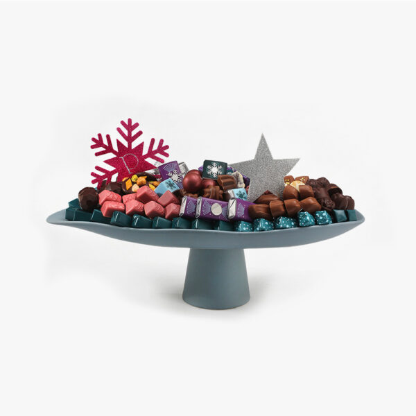 Coupe sur pied en céramique garnie d’un assortiment de 1800g de chocolats